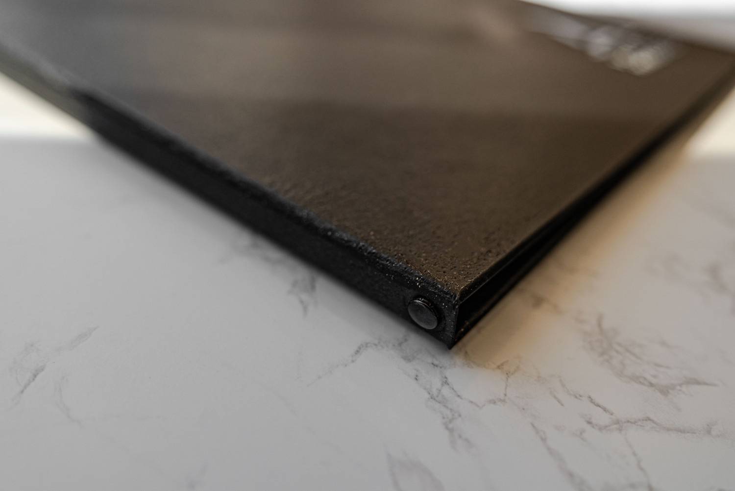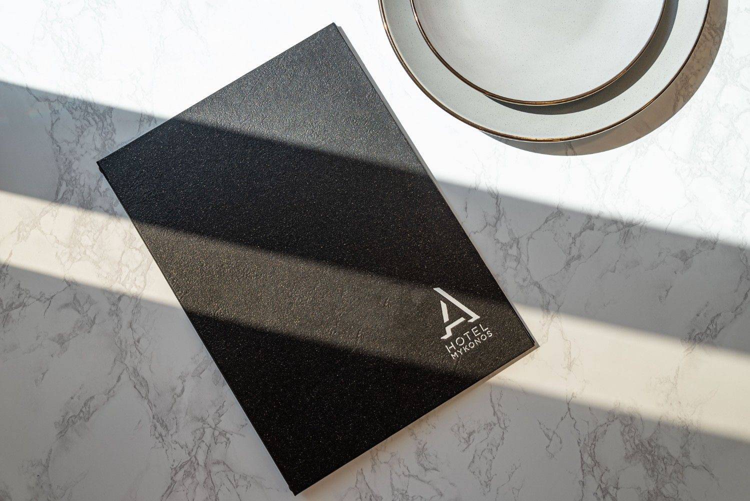 Transform your restaurant with a menu cover that has the warmth and minimalism of stone. This is a wonderful choice for a restaurant in Cyclades. The concept complements the Greek summer sunlight, blue sea and Mediterranean cuisine.