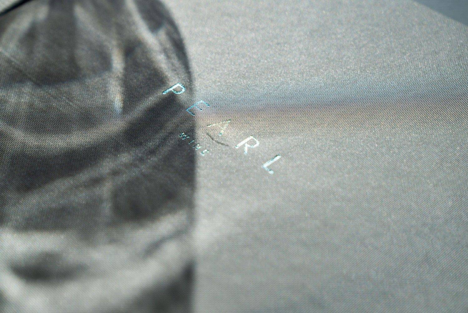 We used the UV method to print a feather in the background, resulting in a special effect. The smooth texture of the paper pairs wonderfully with the blue metal foil stamping.