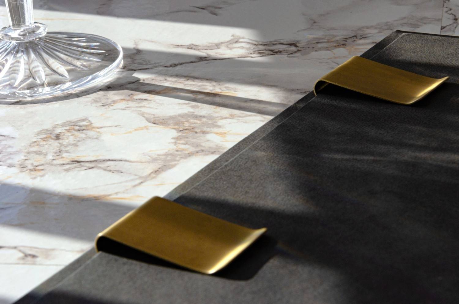 Small details make all the difference. A beautiful board food menu stands out with elegant gold money clips that cradle the menu pages.