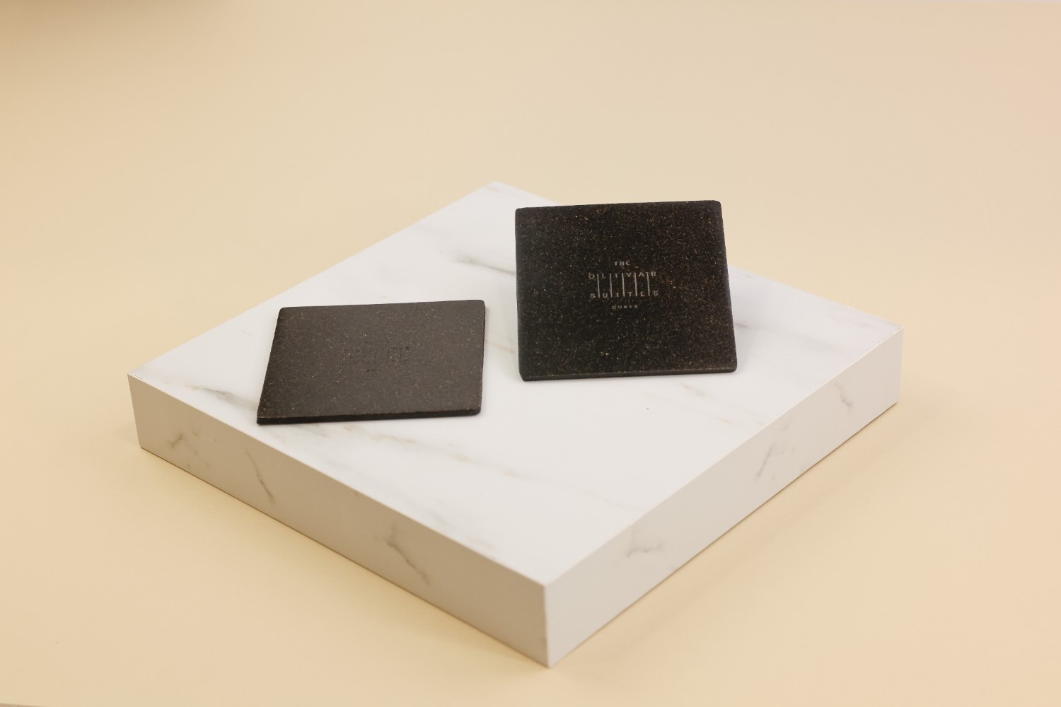 Make a statement with this coaster, made from recycled coffee beans. Its hard format offers a handy feel while laser engraving keeps the natural character of the material. Ideal for an earthy aesthetic.