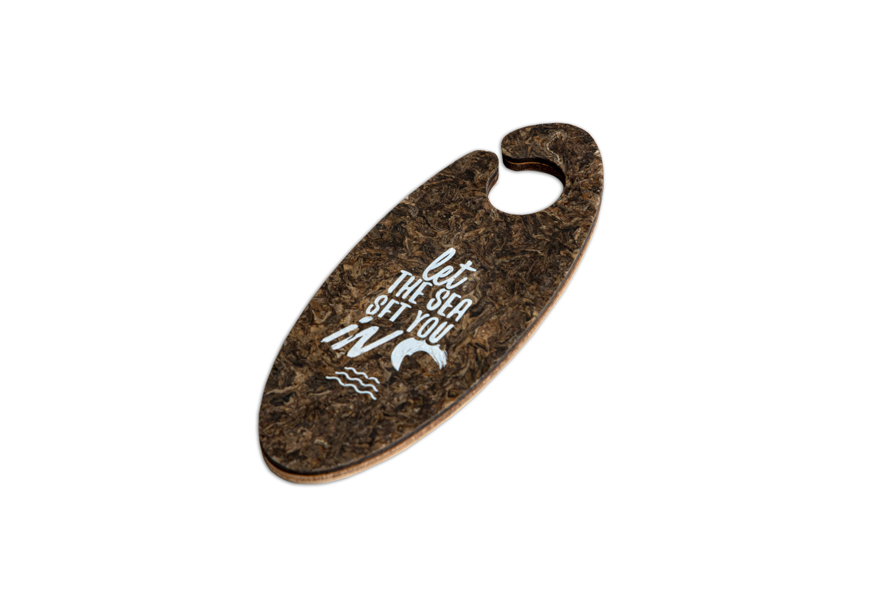 A playful design in the shape of a surfboard, crafted from a combination of wood and seagrass board. This door hanger brings the sea breeze and a joyful summer vibe straight into your rooms. Guests will love its natural look and cheerful spirit. Customize it with your own message and make it a unique part of your hotel’s storytelling.