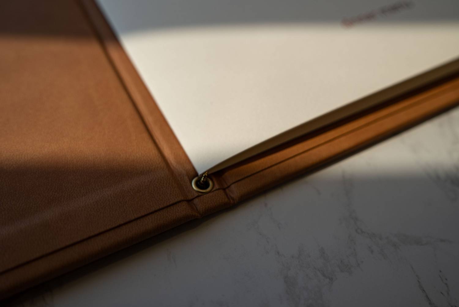 Picture your logo with the hot stamping technique. Pair it with our exquisite menu cover, crafted from PU leather. In an ivory, off-white color that symbolizes purity and elegance.