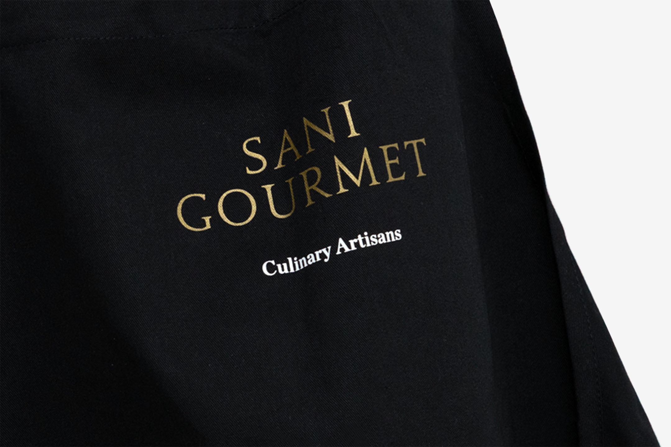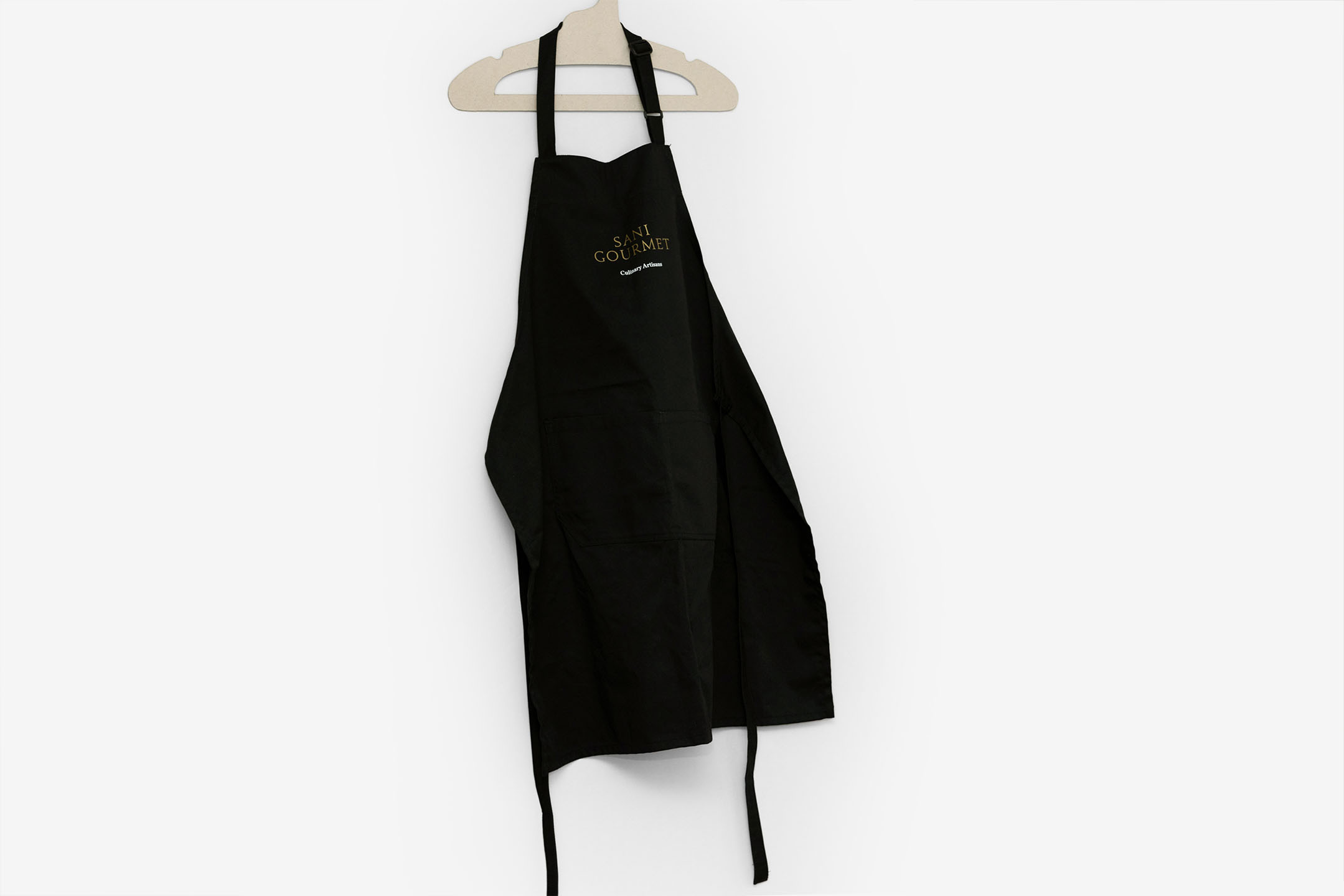 Sani Gourmet was the inspiration behind this kitchen apron, designed in a neutral black color to serve the purpose of this well-curated event.