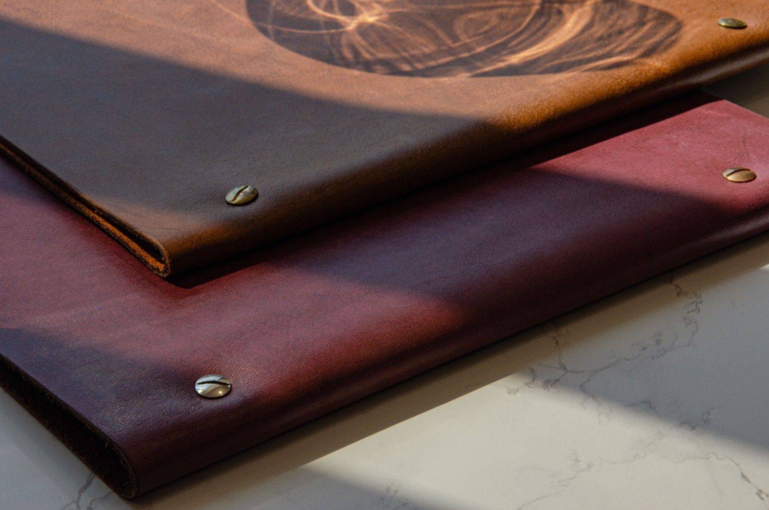 Beautiful leather menus, available in a variety of colors. Is there a classier way to showcase your wines and drinks? Select foil stamping in gold or another color for your logo, and let the wine do the talking.