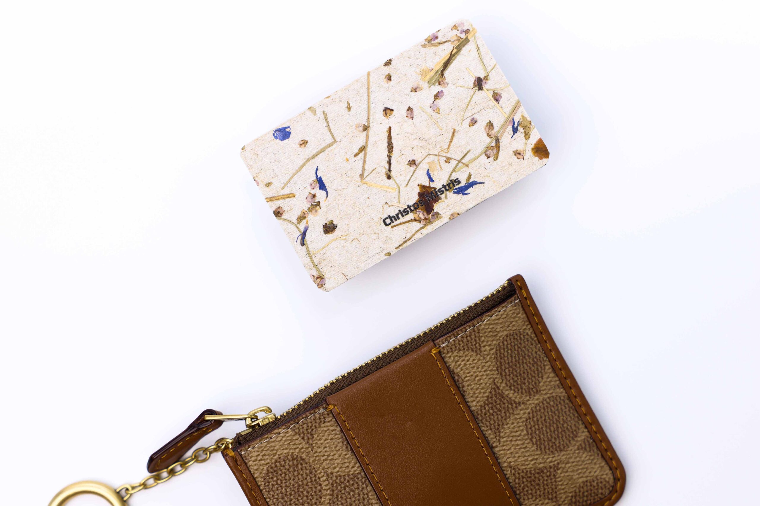 Printed on nature-inspired green paper, this business card brings the feeling of the outdoors into your brand. On the reverse side, a raw surface infused with alpine flowers offers a soft, natural texture. Thin yet meaningful, it delivers an environmental message without needing to say much. Simple, sustainable and full of calmness, it’s a unique way to present your brand with grace and respect for the planet.