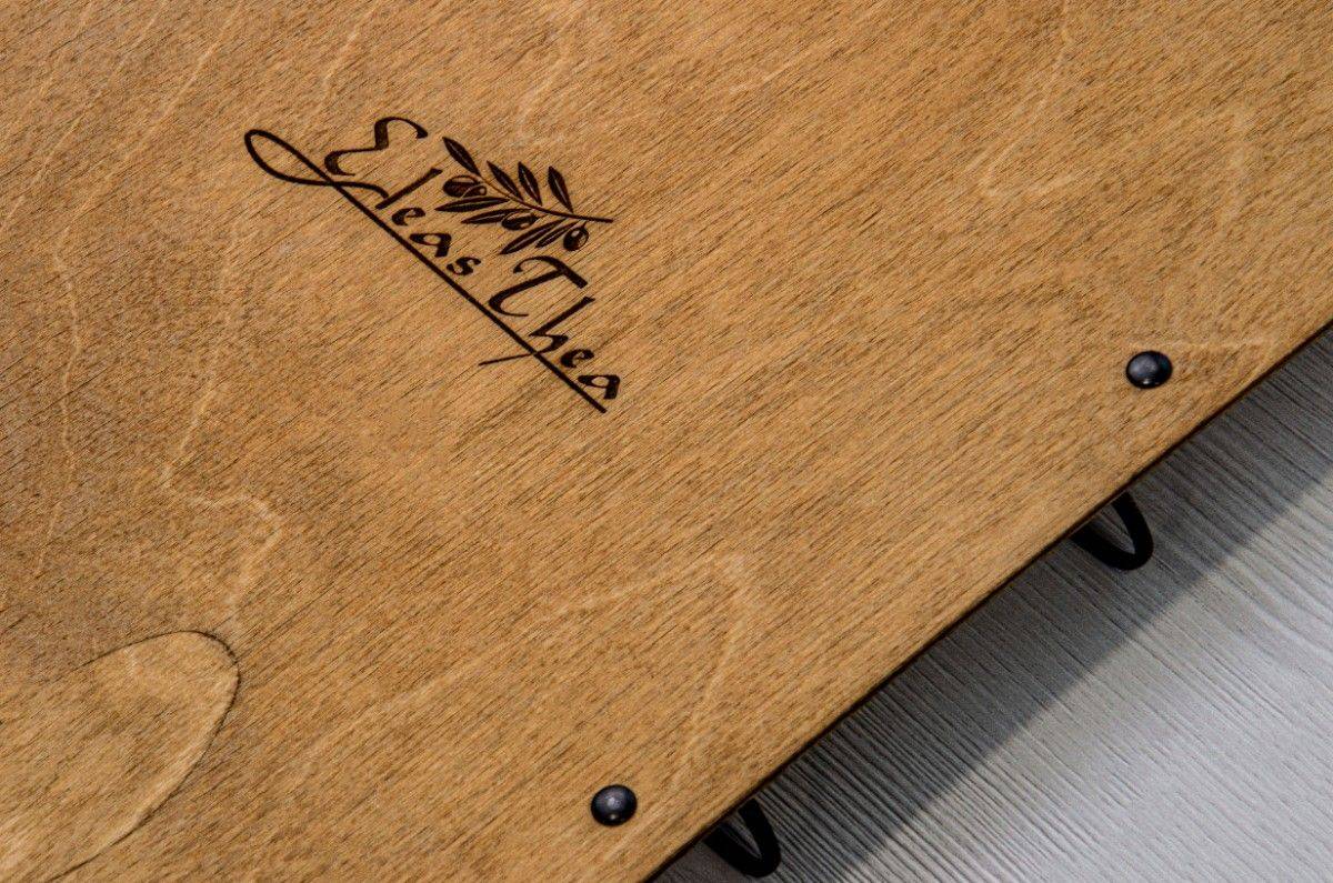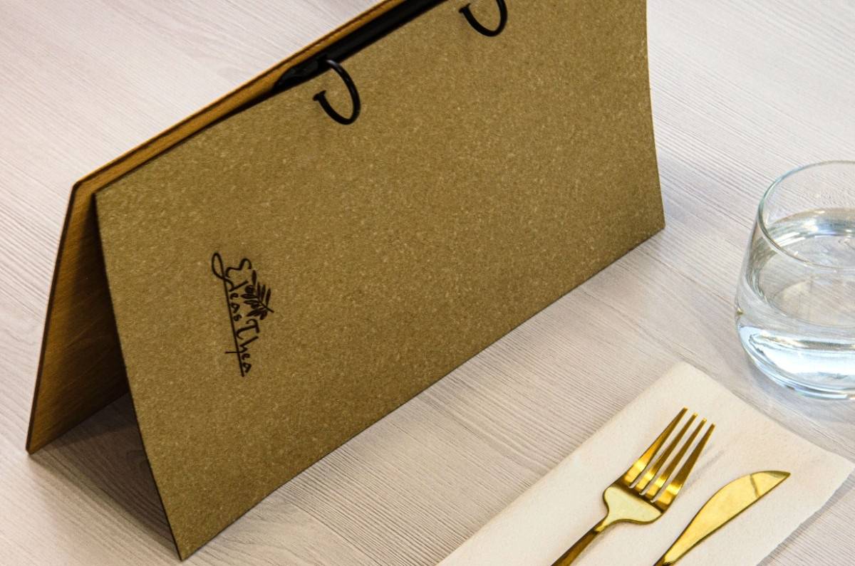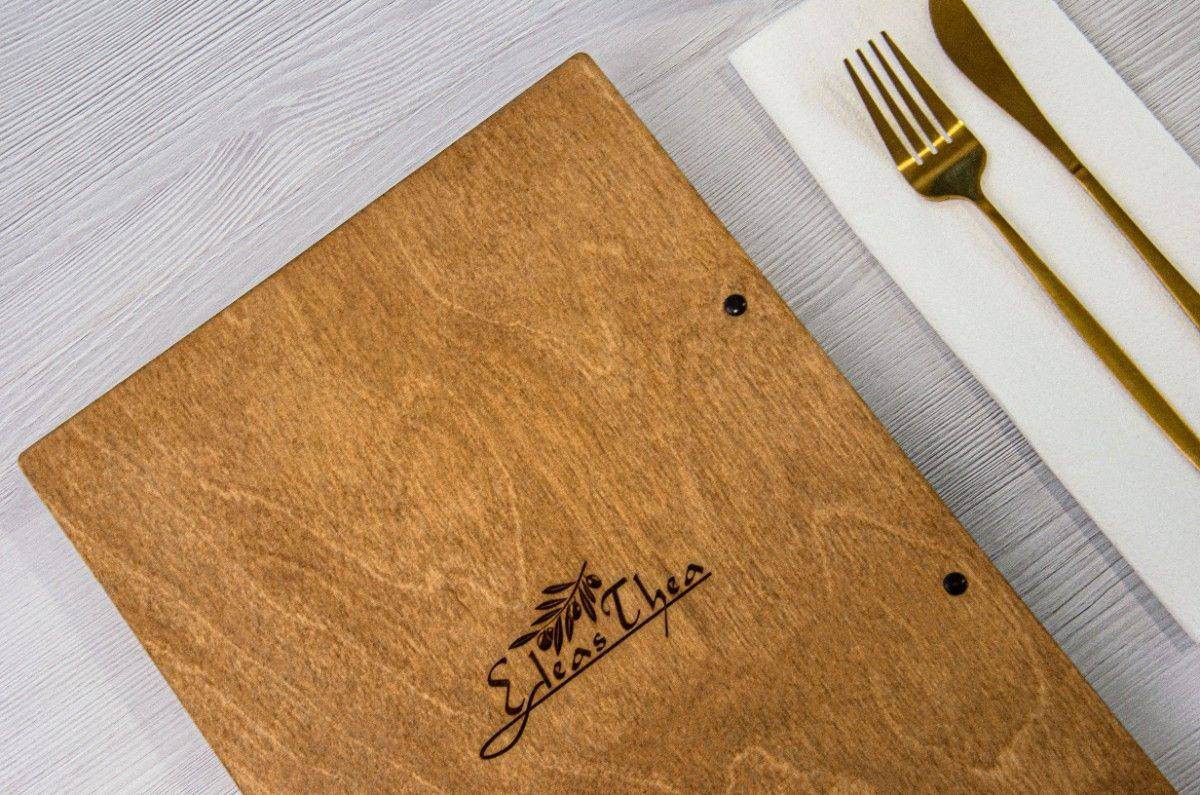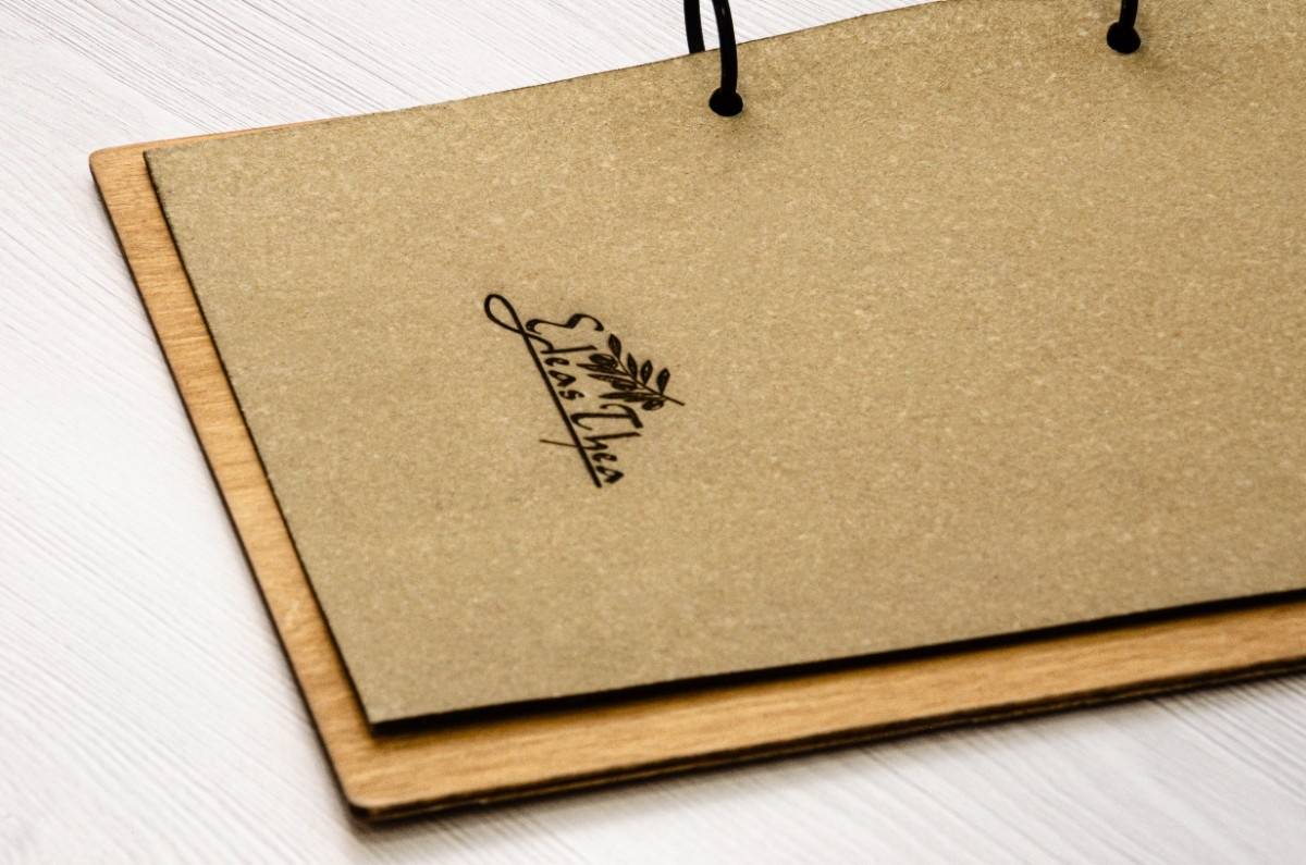 We named this wooden menu “The Natural Mediterranean Beauty”. It captures the rustic charm and natural grace of the Mediterranean. The recycled leather cover ensures that the interior pages are well-protected.