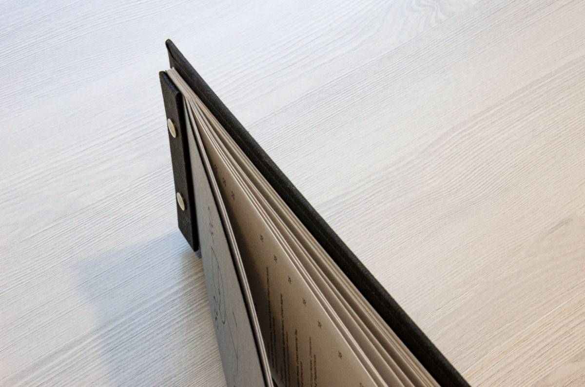Enhance your dining experience with this sustainable menu, made from recycled leather. Designed to guide your guests through your wine and drink selection effortlessly. It combines practicality with eco-conscious materials.