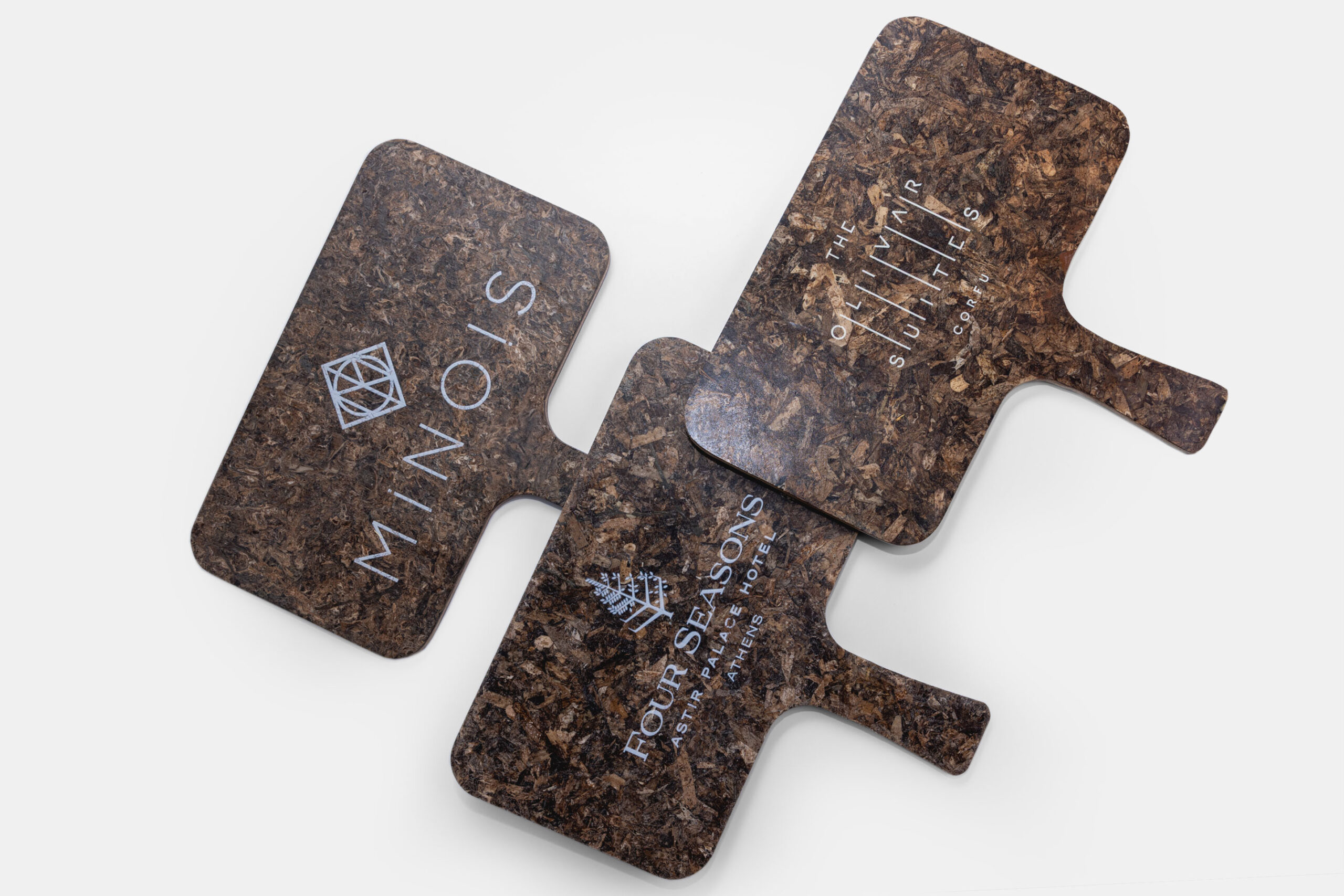 A fully sustainable hotel nameboard crafted from seagrass board. It’s easy to hold and visible even from a distance. The white UV-printed logo stands out clearly, helping guests recognize your brand right away. Triple lamination gives it strenght and stability.