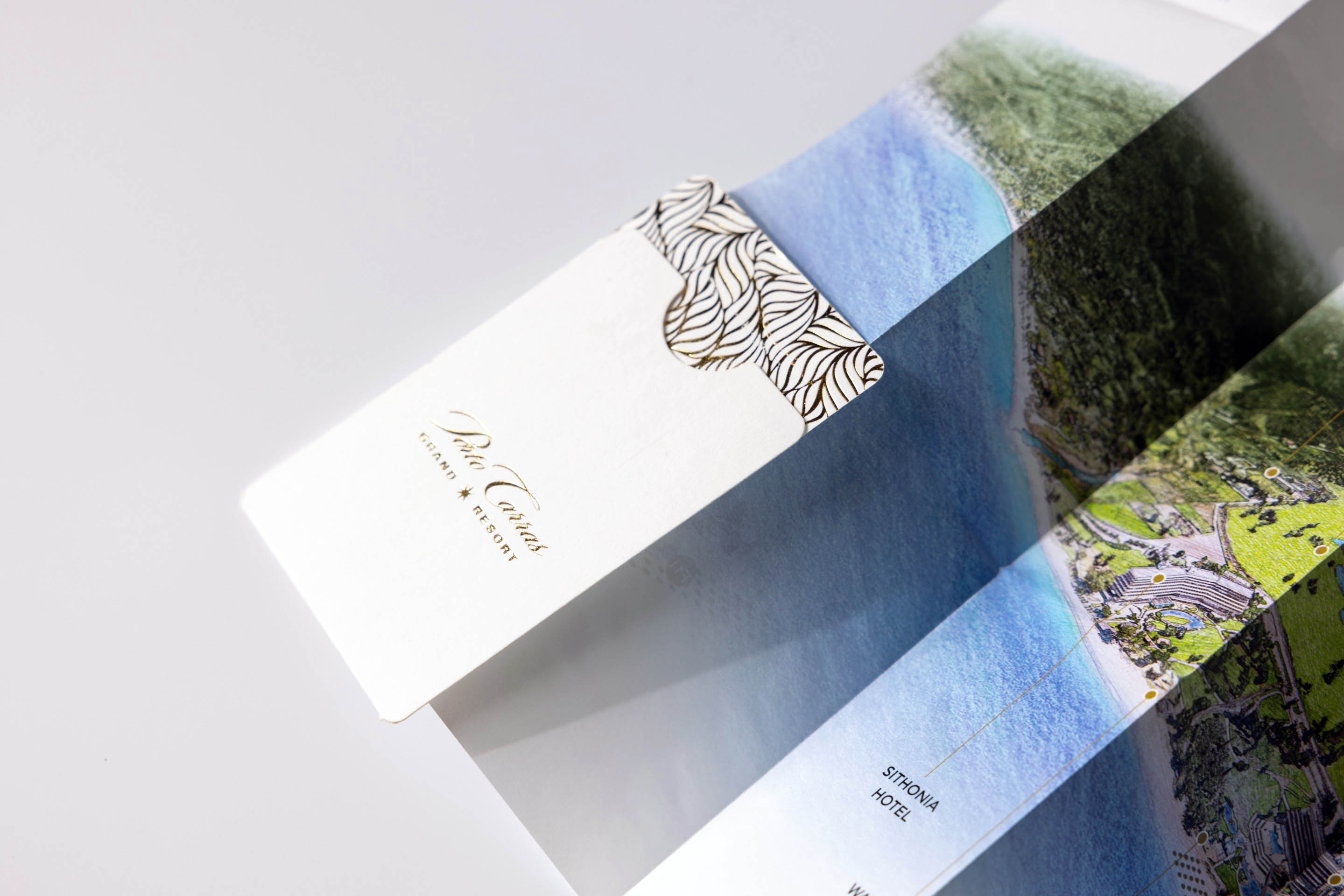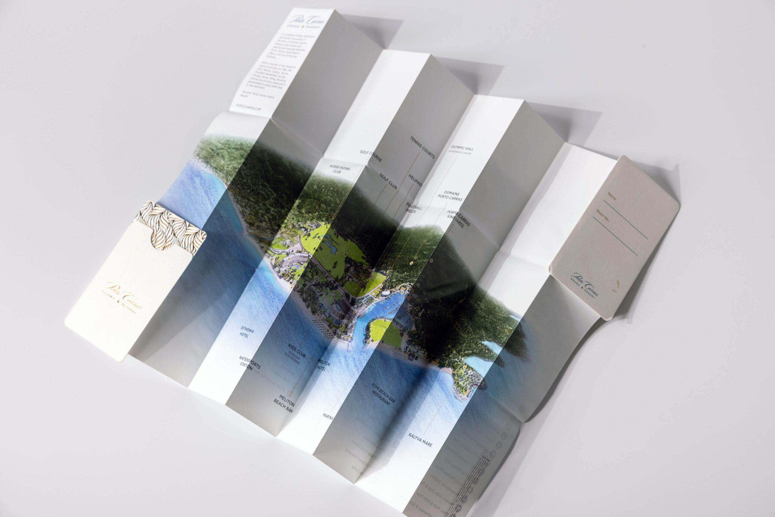 For our partner, Porto Carras Grand Resort, we designed this Z-key folder using premium uncoated paper. The extra detail is the gold foil-printed pattern from the front cover, pairing with the shiny gold foil logo. A gift-like piece that elevates your guest experience.