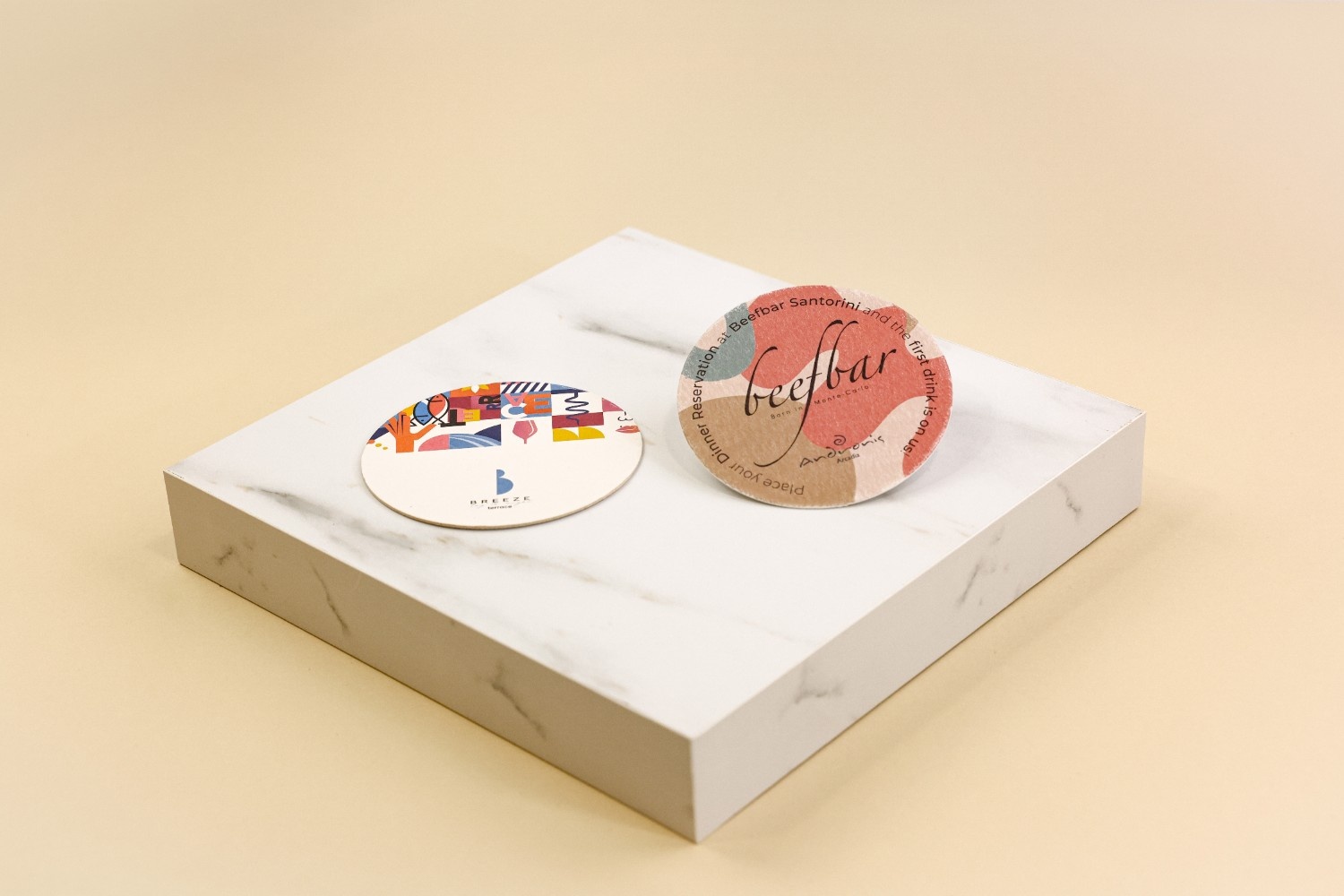 Round and absorbent, this paper-based coaster is all about function with a soft, natural texture. Durable enough for repeated use, it’s ideal for busy, casual settings.