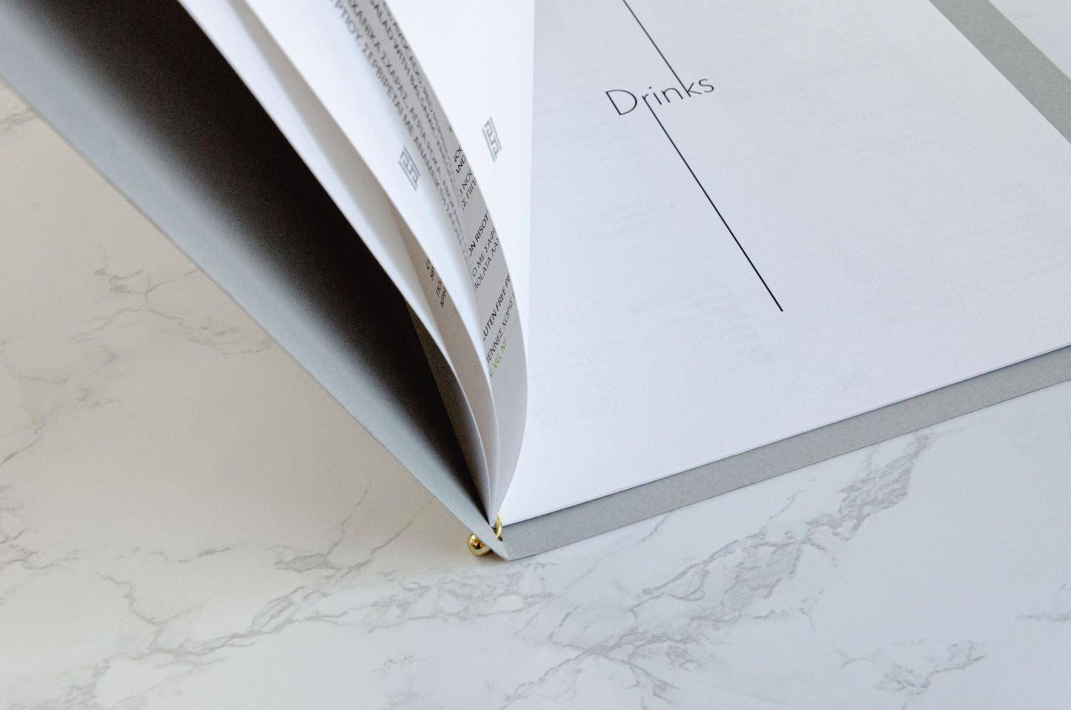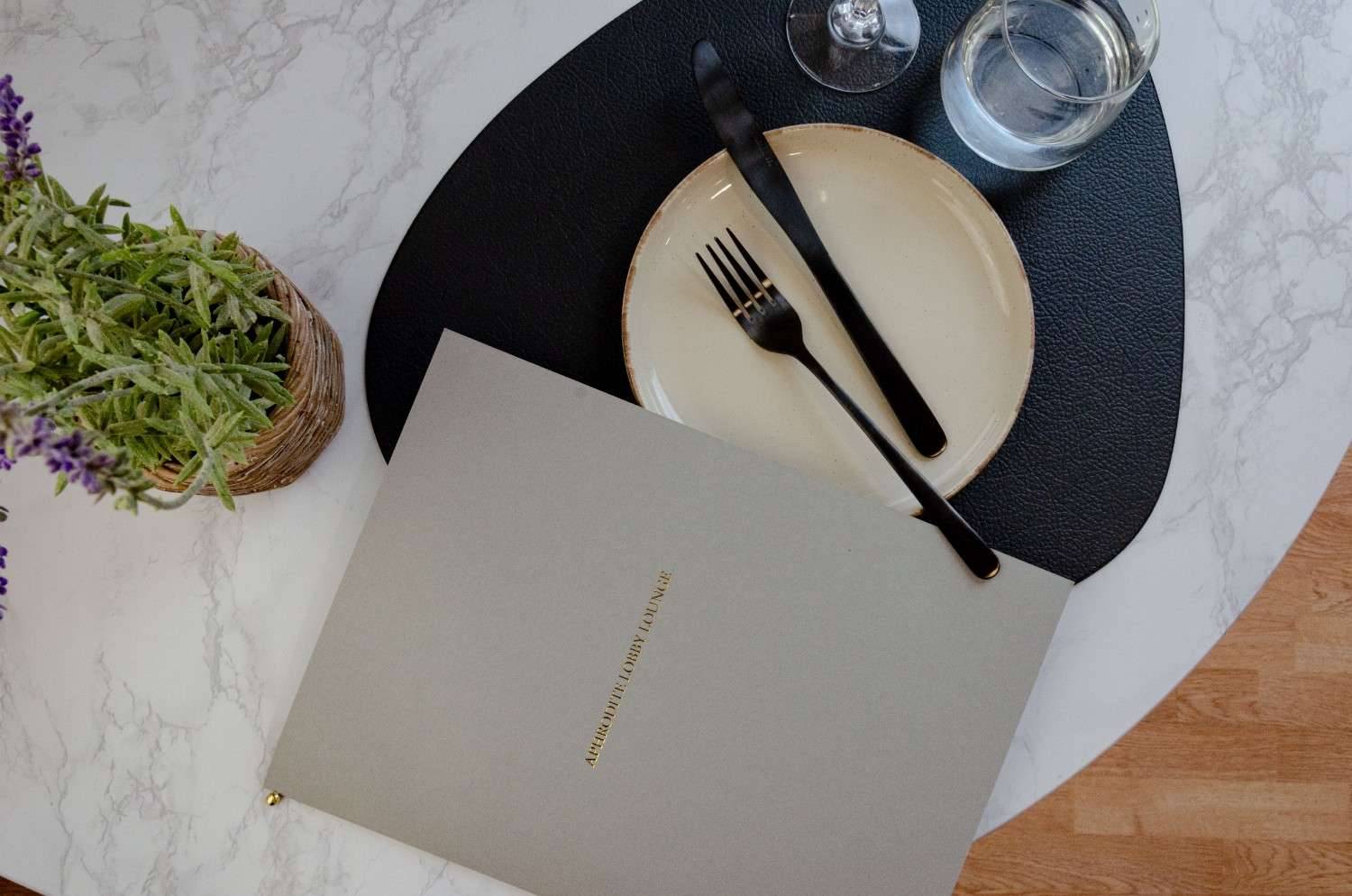 Discover elegance in soft menu covers. The premium paper, finished with soft-touch lamination and gold details, adds finesse to your menu.