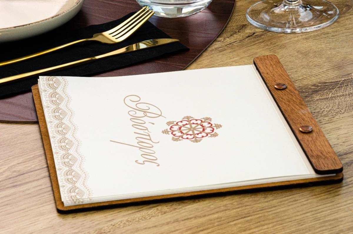 An adorable and handy menu, crafted from wood. The engraved background allows you to customize your message, adding a personalized touch.