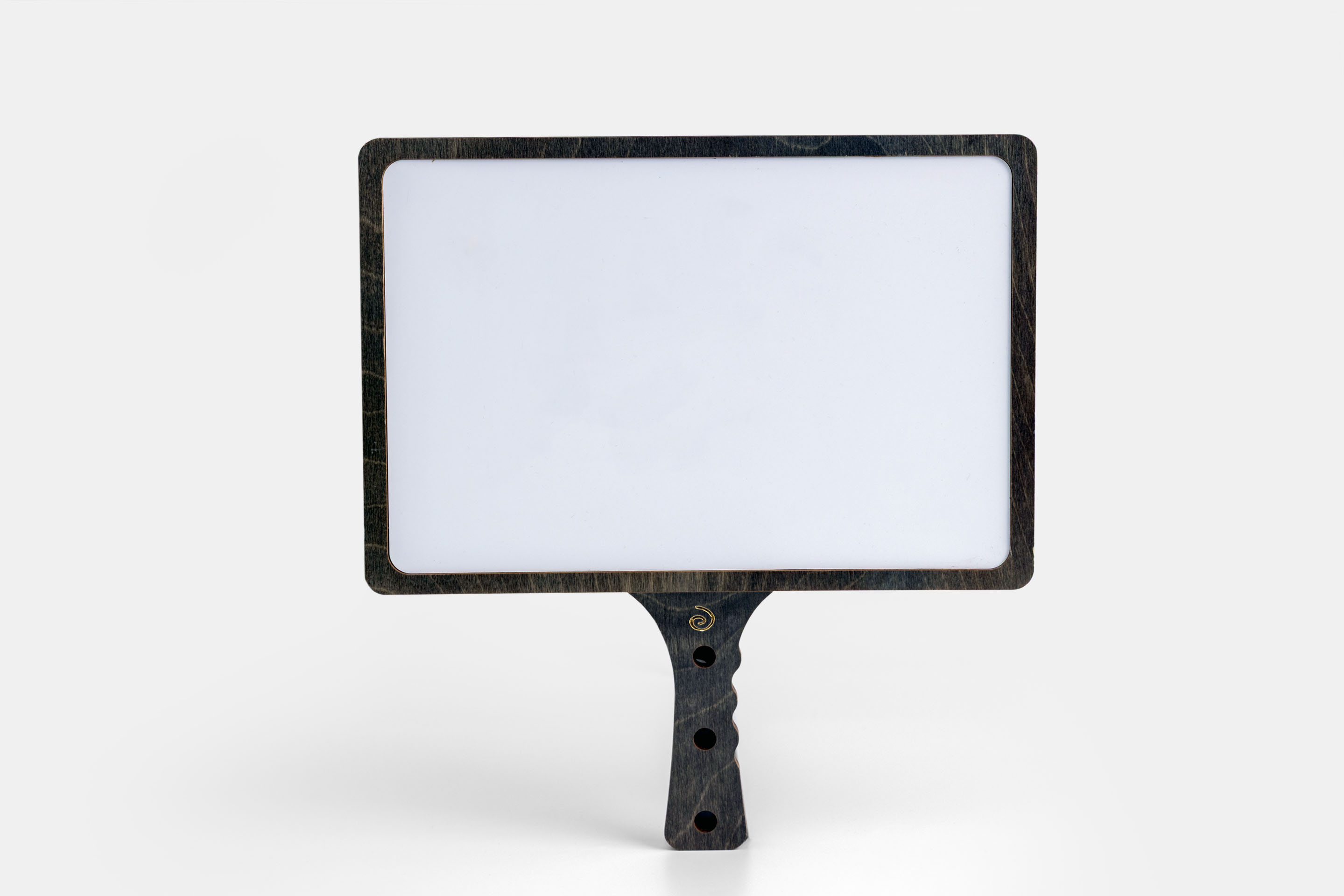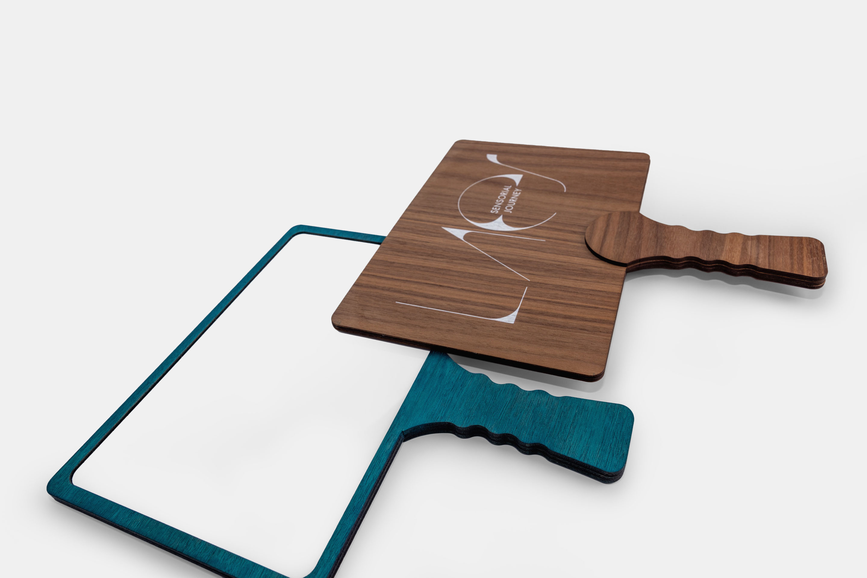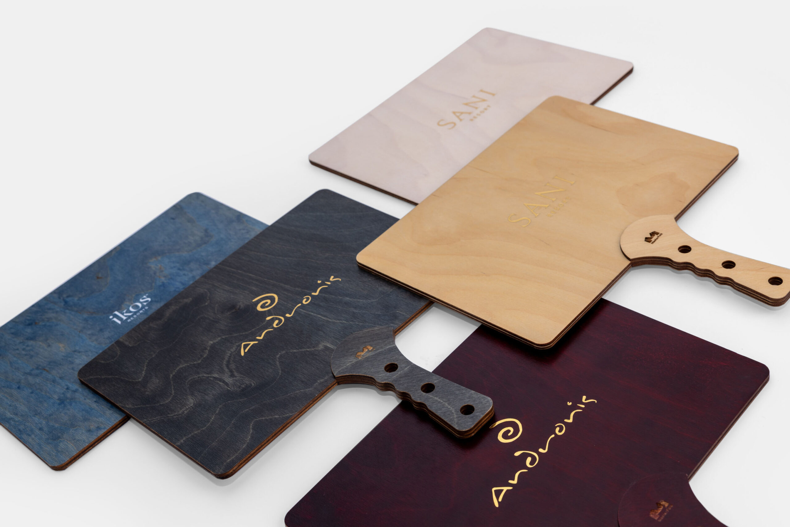 A wooden hotel nameboard crafted with double lamination for extra durability. It features a white board on one side, allowing you to write your guest’s name. The gold logo adds a luxurious finishing touch.